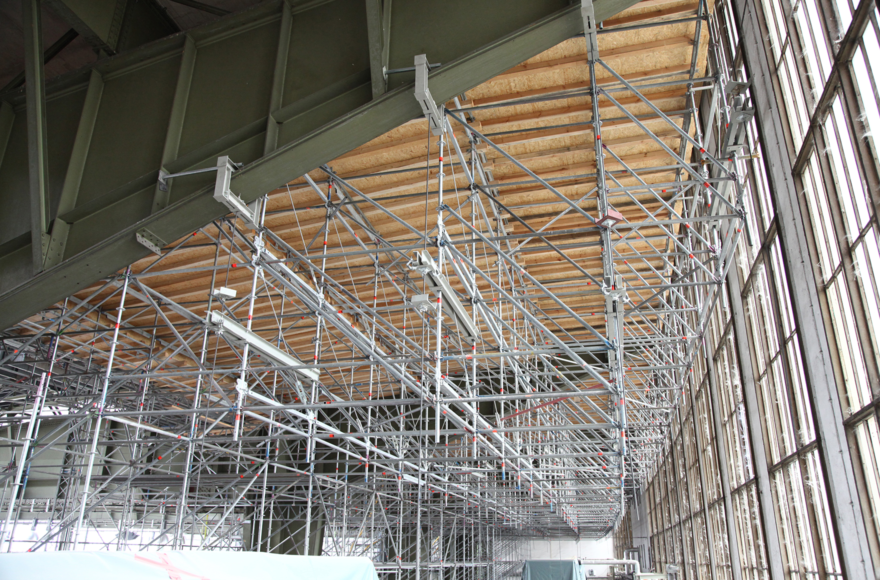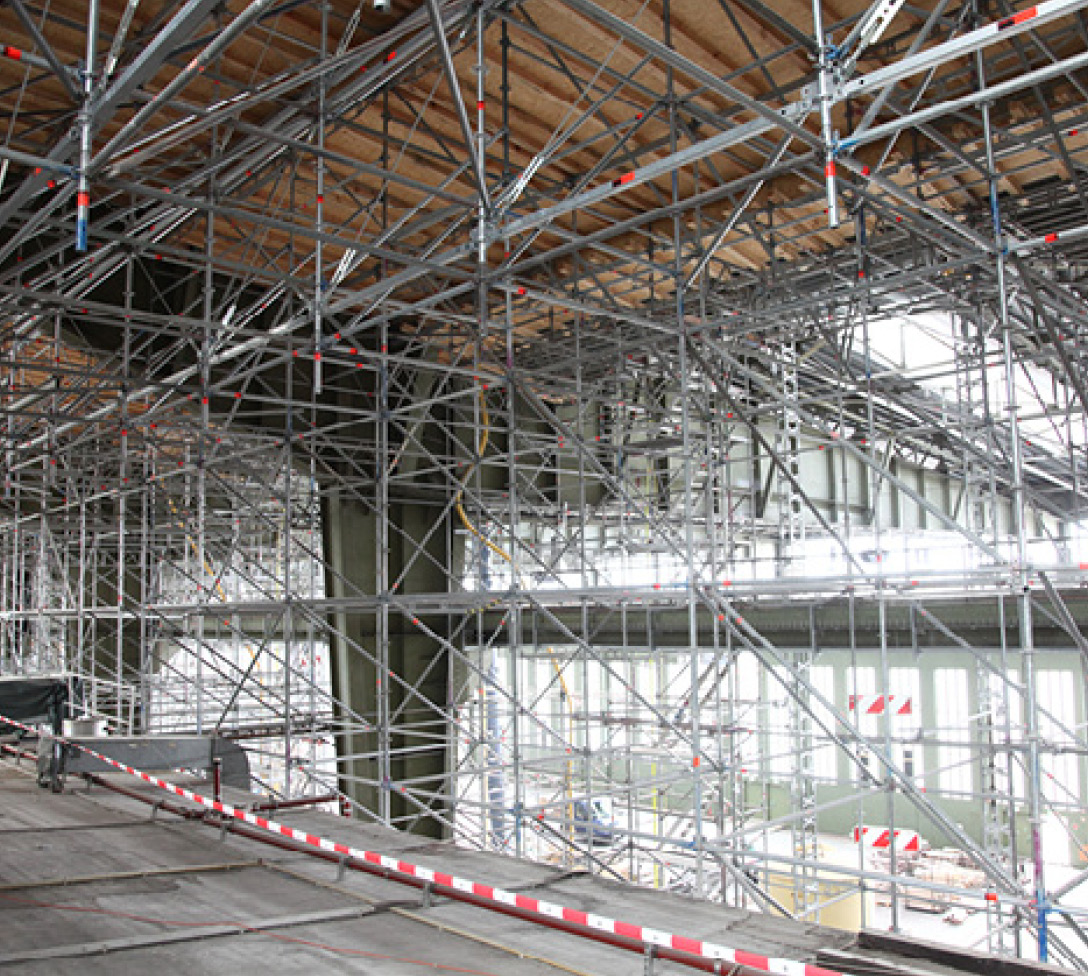 58.000 m³ Arbeits- und Raumgerüste zur Sanierung der Betondecken in den Hangars.