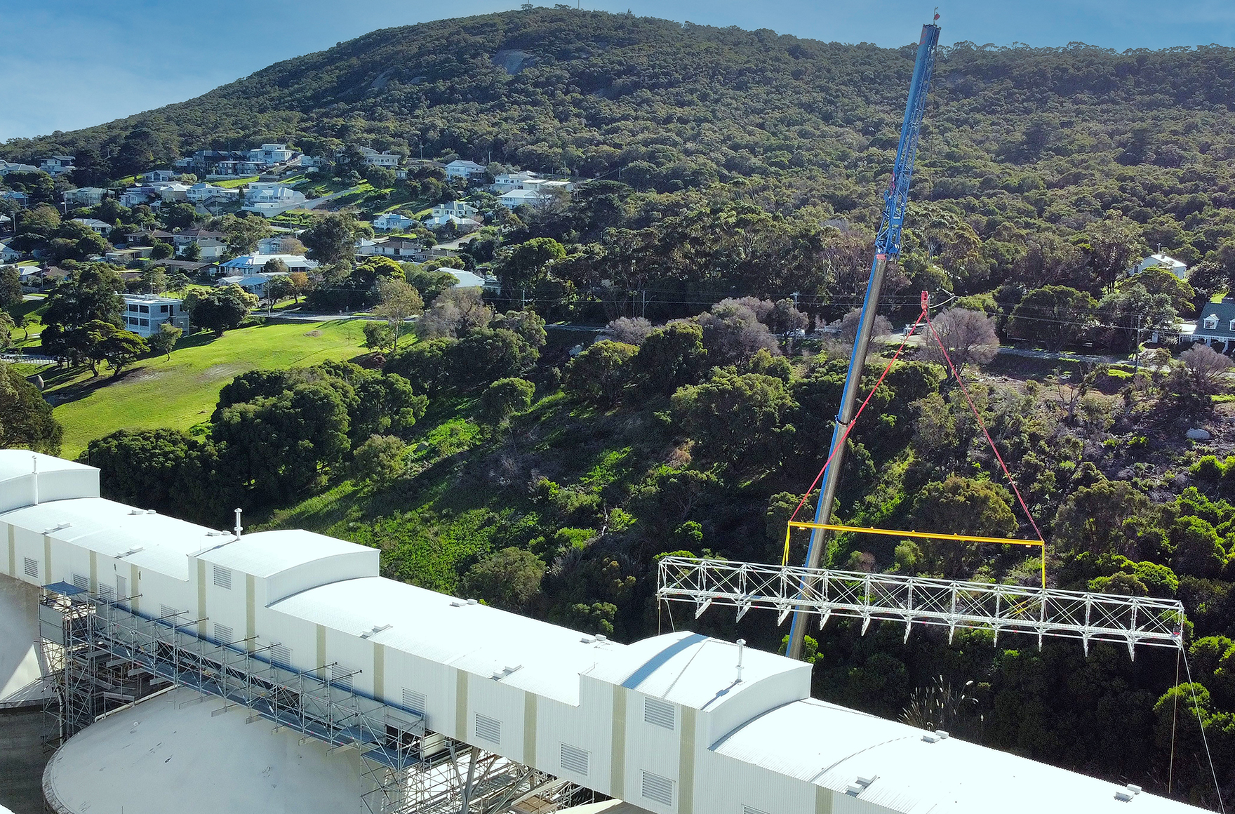 - Schnelle und sichere Montage am Boden von freispannenden Überbrückungen aus Allround Fachwerkträger und anschließendes Einheben an beiden Seiten der Galerie per Kran