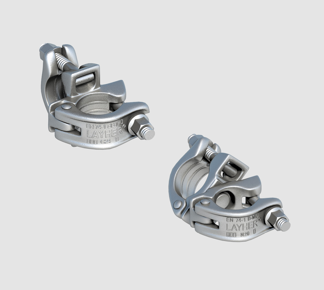 Layher bietet Ihnen ein umfassendes Programm an Gerüstkupplungen mit Schraub- und Keilverschluss, in Stahl, gesenkgeschmiedet nach