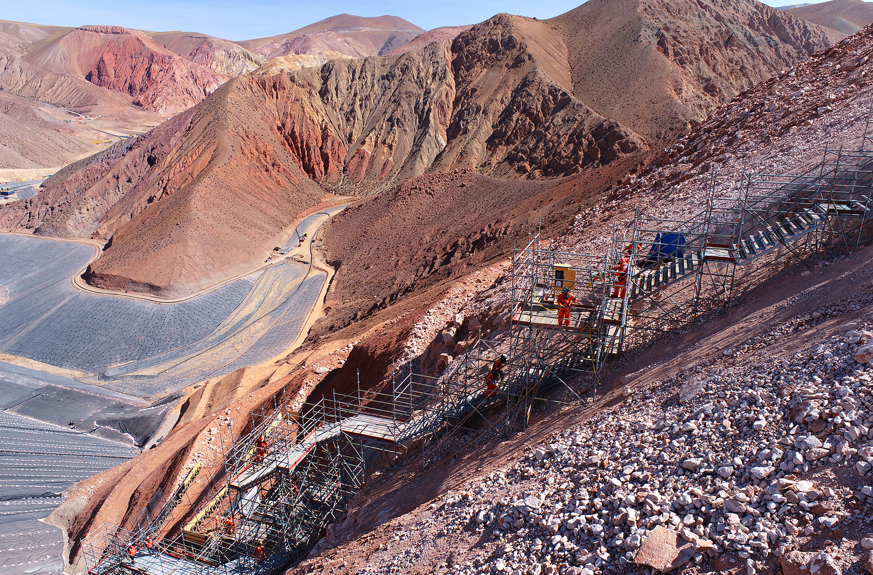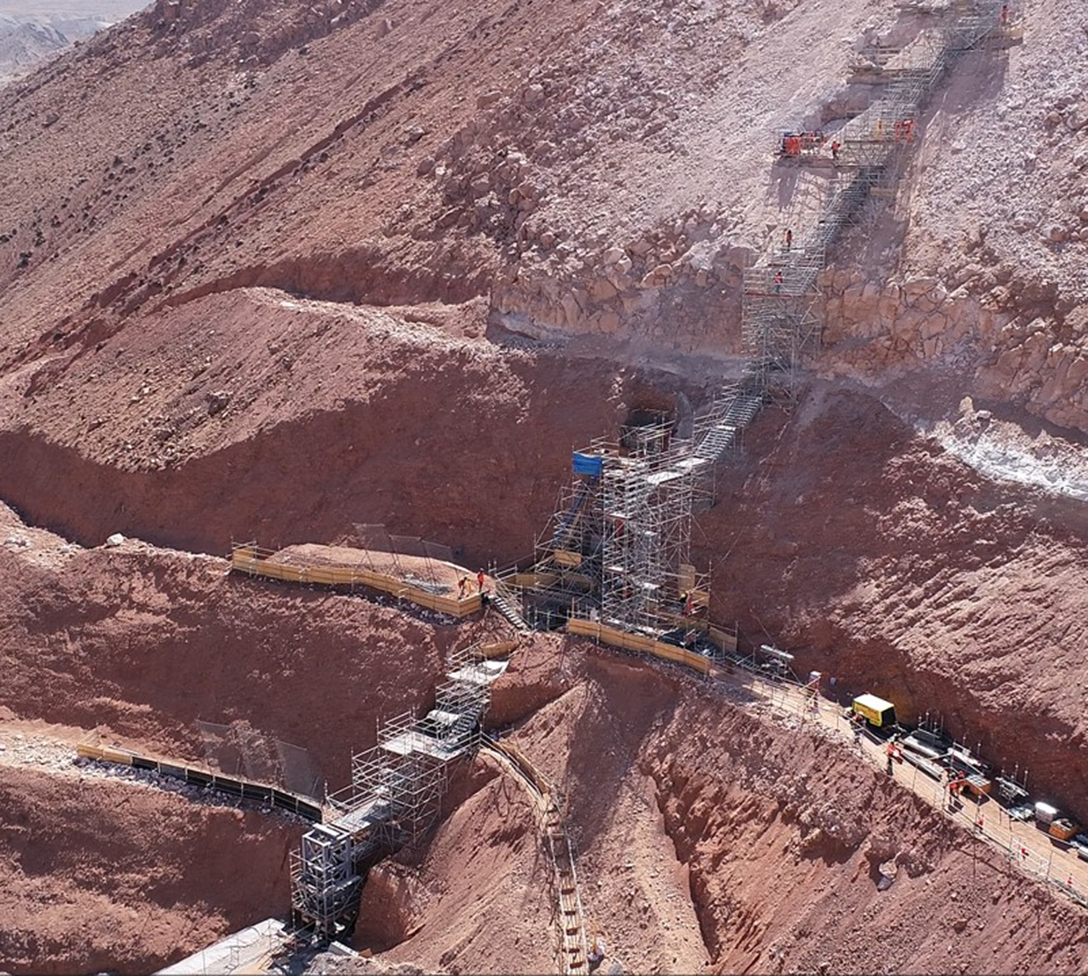 No, we’re not talking about the former number one on many of the world’s hit parades, but about a “real” stairway – in the middle of the South American desert. Here, at an altitude of over 4,000 m, it was necessary to construct a temporary vertical access route measuring over 200 m to the foundations and weld points of the pipeline in a copper mine. Given the remote location and the rough, unwelcoming terrain, this was no easy task. That is why the Layher application engineers present at the site decided to call on the benefits of digitalisation offered by Layher SIM.